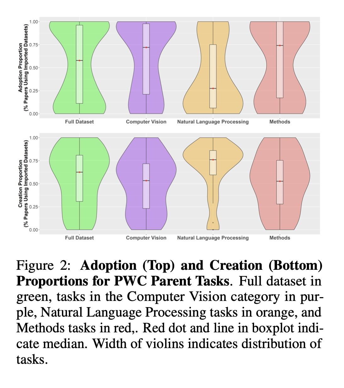 Interesting NeurIPS2021 paper showing that NLP researchers infrequently adopt datasets from other tasks in their studies (half of them do this 27.4% of the time), but frequently create their own datasets for their reported research (more than half at 76.0%). Contrast this to Computer Vision, where the numbers are 71.9% and 53.3%, respectively. You would think NLP datasets are harder to create, no?