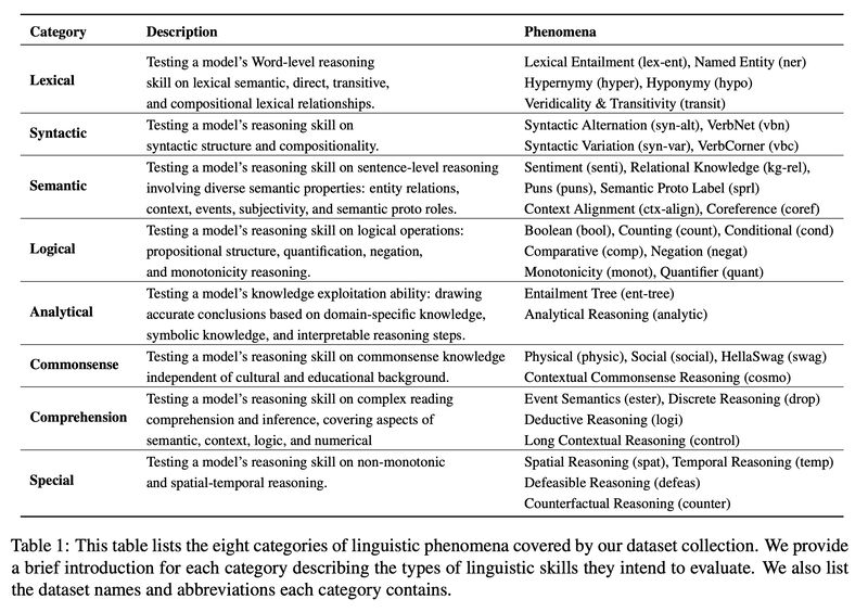 Great NAACL2022 paper examining NLI (natural language inference) through 4 tests (Zero-shot, inoculation, hypothesis-only and cross-distribution generalization), 8 linguistic categories (lexical, syntactic, semantic, logical, analytical, commonsense, comprehension and special; Table 1) and two difficulty distributions via Pointwise V-information.
