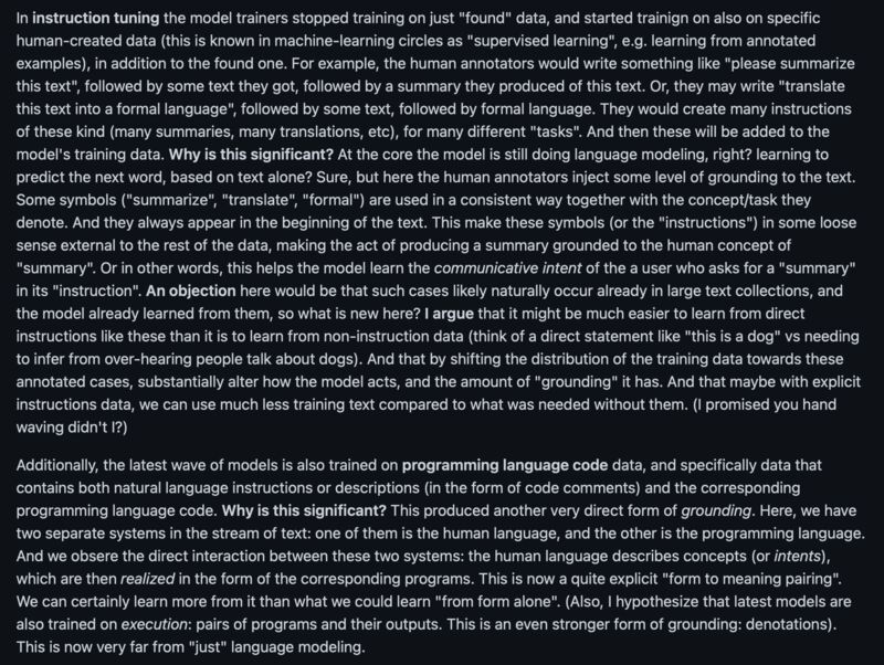 Very balanced and insightful take on LLMs, especially on ChatGPT, by Yoav Goldberg: [1]