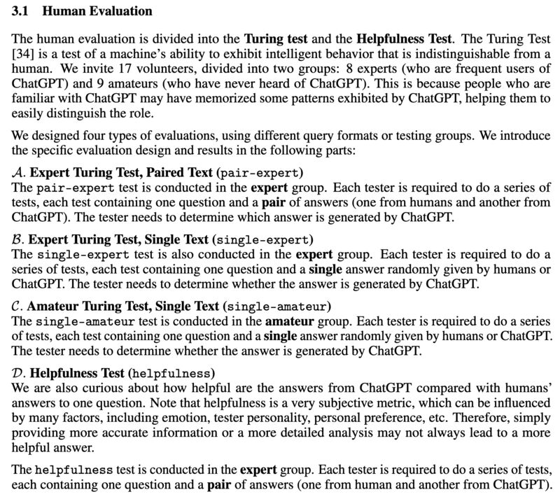 Human experts can detect ChatGPT-generated answers much more reliably than human amateurs (screenshot 3).