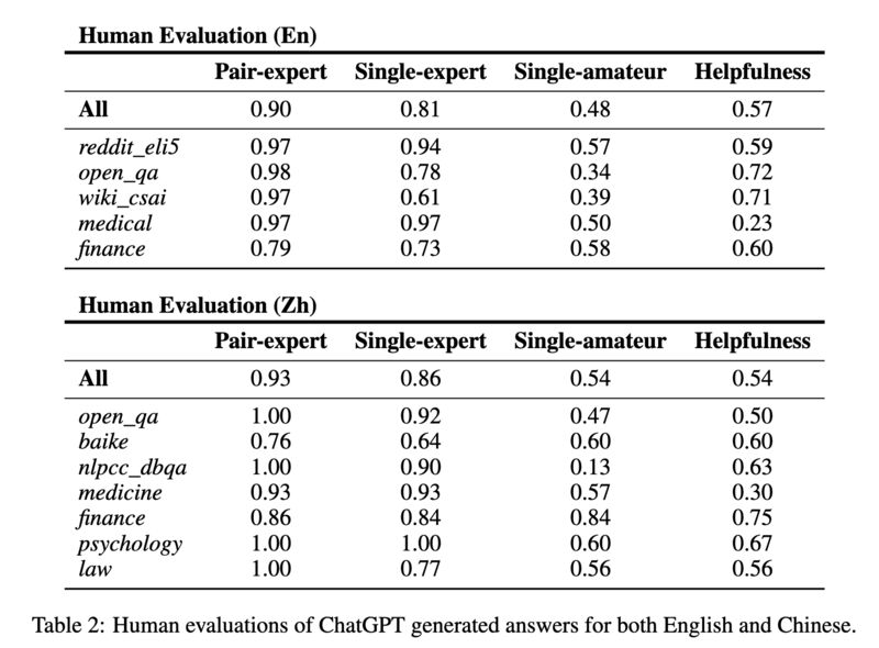 Slightly more than half of the times human experts found ChatGPT-generated answers are helpful (screenshot 3).