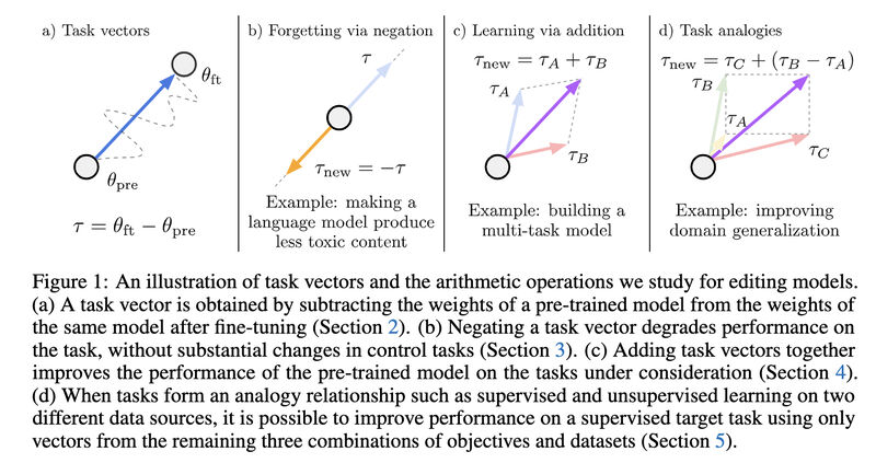 Gabriel Ilharco Magalhães, Marco Túlio Ribeiro, Mitchell Wortsman, Suchin Gururangan, Ludwig Schmidt, Hannaneh Hajishirzi and Ali Farhadi. 2022. “Editing Models with Task Arithmetic.” ArXiv [Cs.LG]. arXiv. [1].