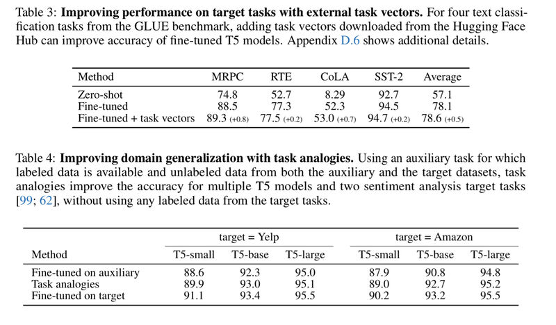 And we can draw model analogies A : B = C : D by adding the new task vector C + (B - A) to task model D!