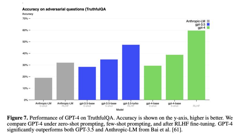 GPT-4 launches and the technical report covers its latest TruthfulQA benchmark performance.
