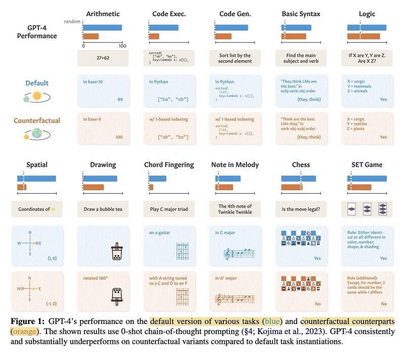 [1] Zhaofeng Wu, Linlu Qiu, Alexis Ross, Ekin Akyürek, Boyuan Chen, Bailin Wang, Najoung Kim, Jacob Andreas, and Yoon Kim. 2023. “Reasoning or Reciting? Exploring the Capabilities and Limitations of Language Models Through Counterfactual Tasks.” http://arxiv.org/abs/2307.02477