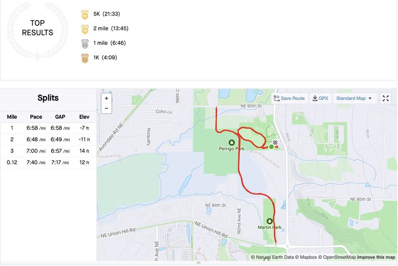 21:16 at Parkrun 5K — 6th PR of the year. All three 2024 stretch goals checked: sub-7’ pace, 6 PRs, 3 marathon races.