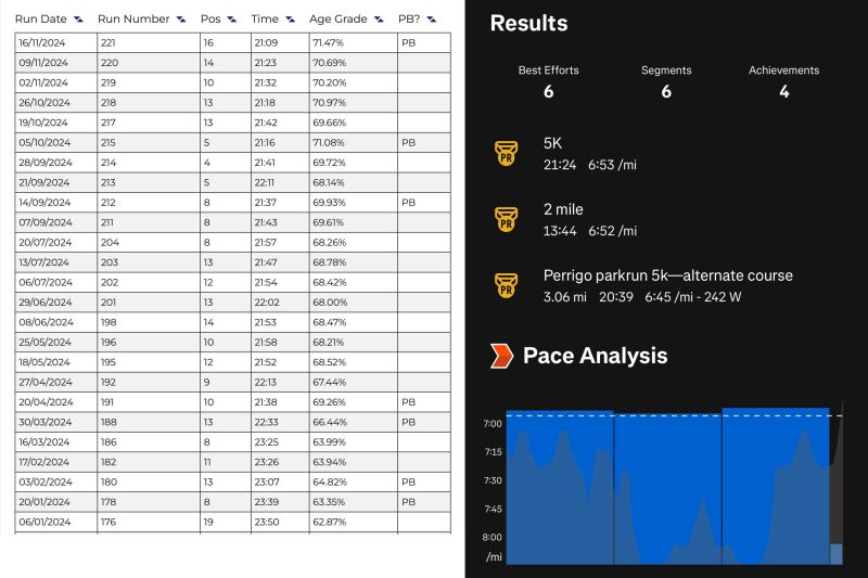 Parkrun 5K PR (21:09 official) — 7th PR of the year. Plus my longest run yet: a 34-mile ultramarathon on the Snoqualmie Valley Trail.