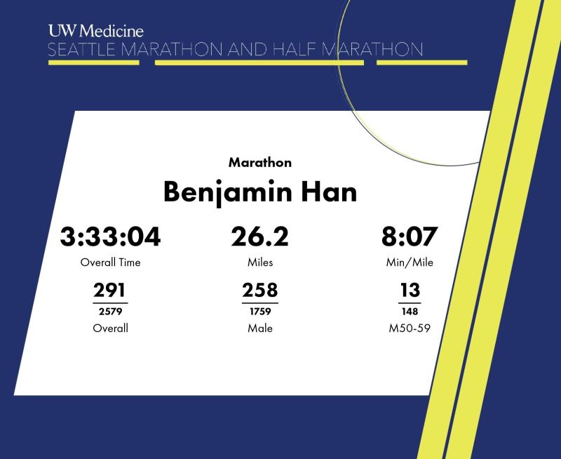 Running update: today is the last day of the Thanksgiving week, and I ran my 5th (and final) marathon race and 18th marathon run this year at Seattle Marathon 2024! Results: official time 3:33:04 pace 8’07”/mi, 1:49 short from my PR 3:31:15!