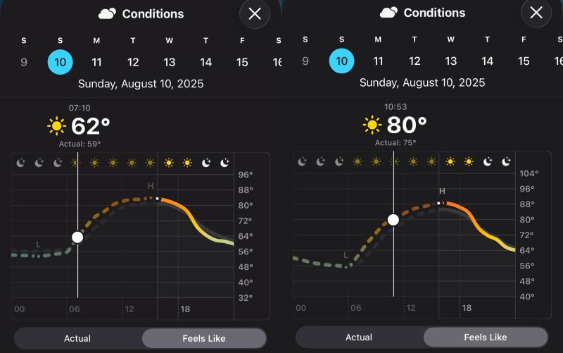 📸 Picture 6: starting/finishing temperature 📸 Picture 7: heat advisory 📸 Picture 8: temperature-adjusted pace